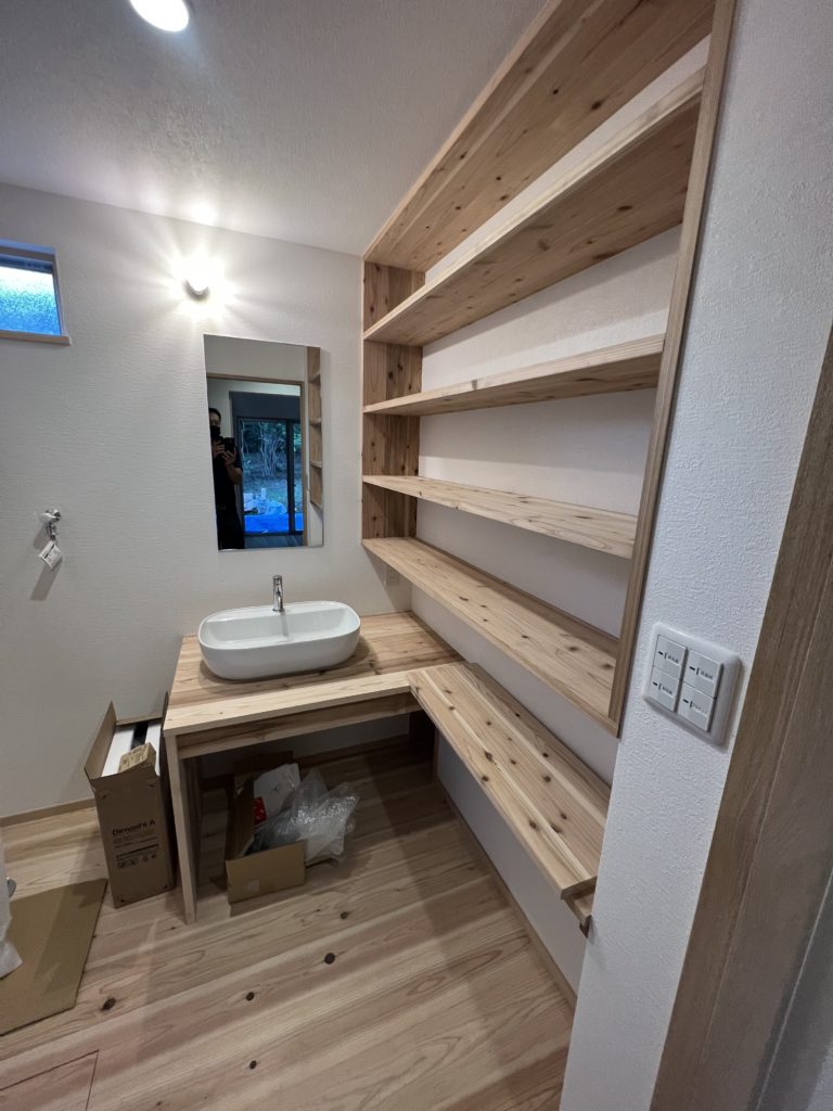 木製洗面台の家